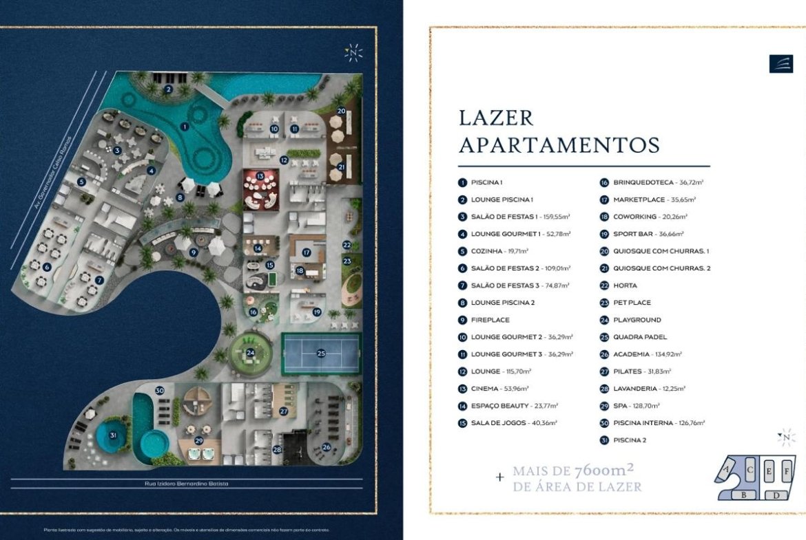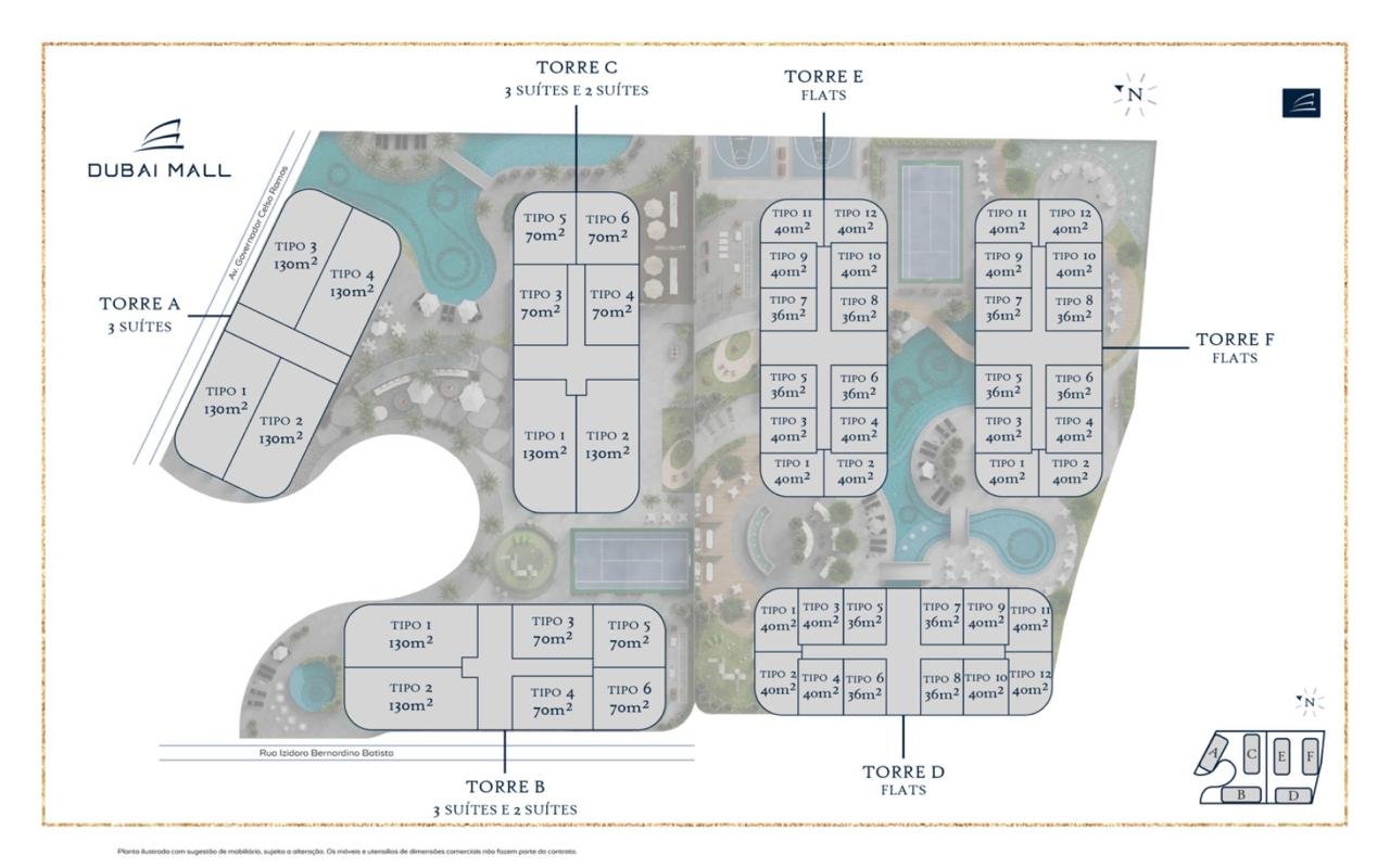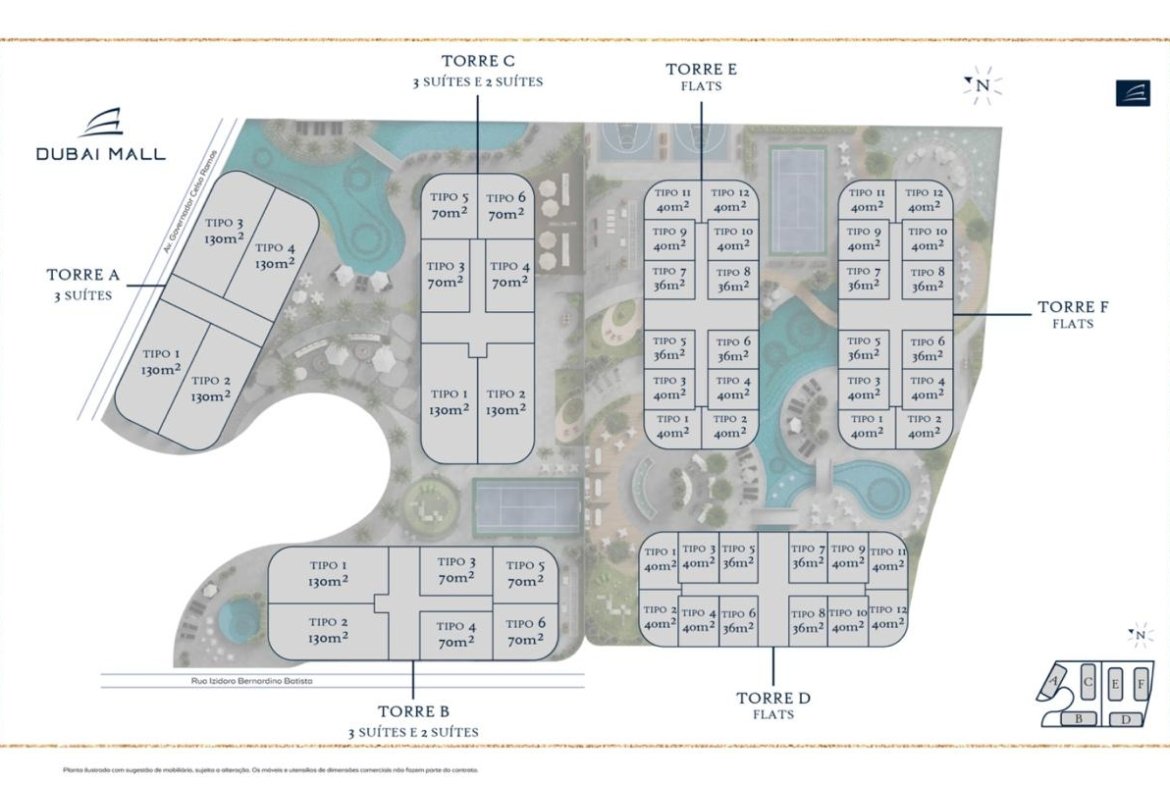 - Conceito Inovador e Único: Imagine 6 torres residenciais de 31 andares integradas a um moderno shopping center com 4 pavimentos e 13.000 m². Seus futuros inquilinos ou compradores terão acesso a um universo de lojas, serviços e entretenimento sem sair do complexo. Isso significa alta demanda e liquidez!