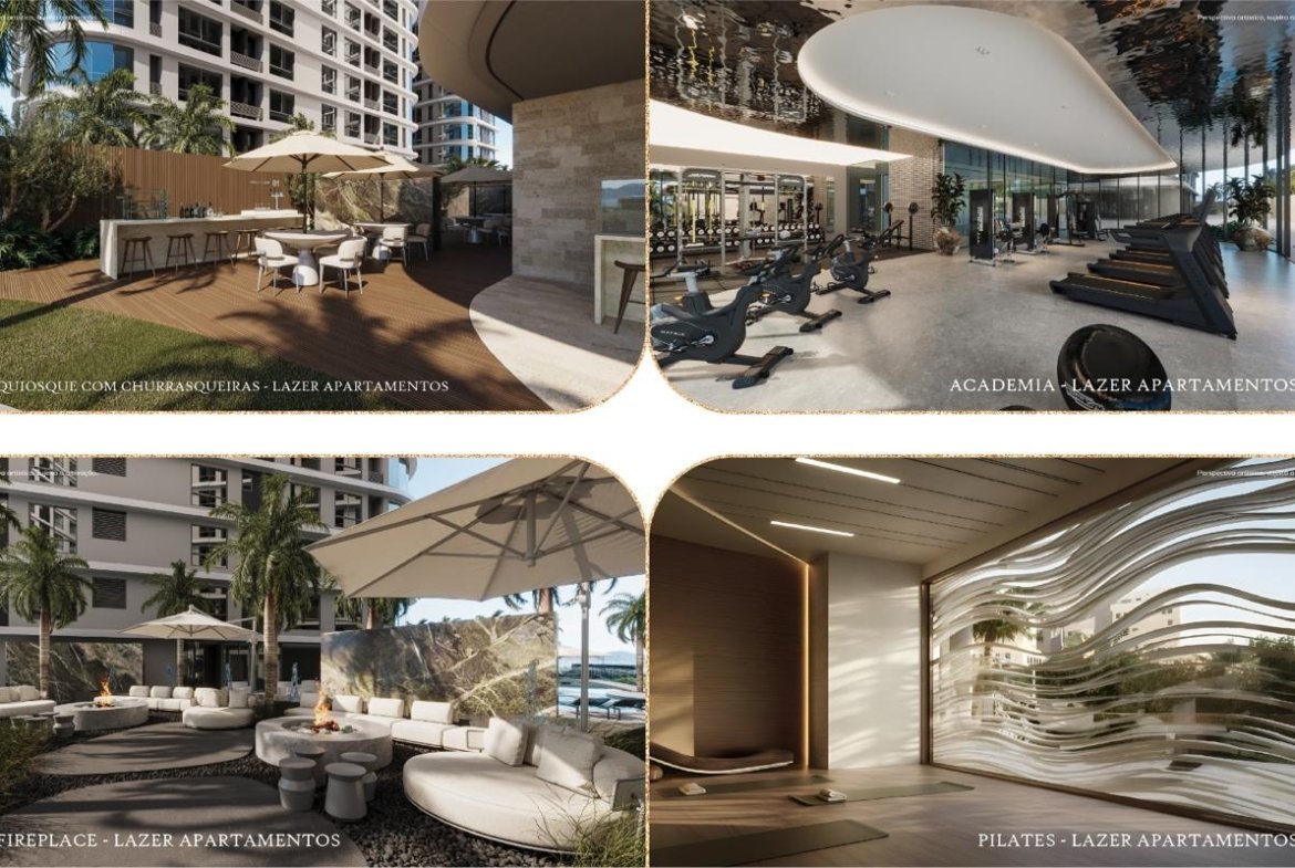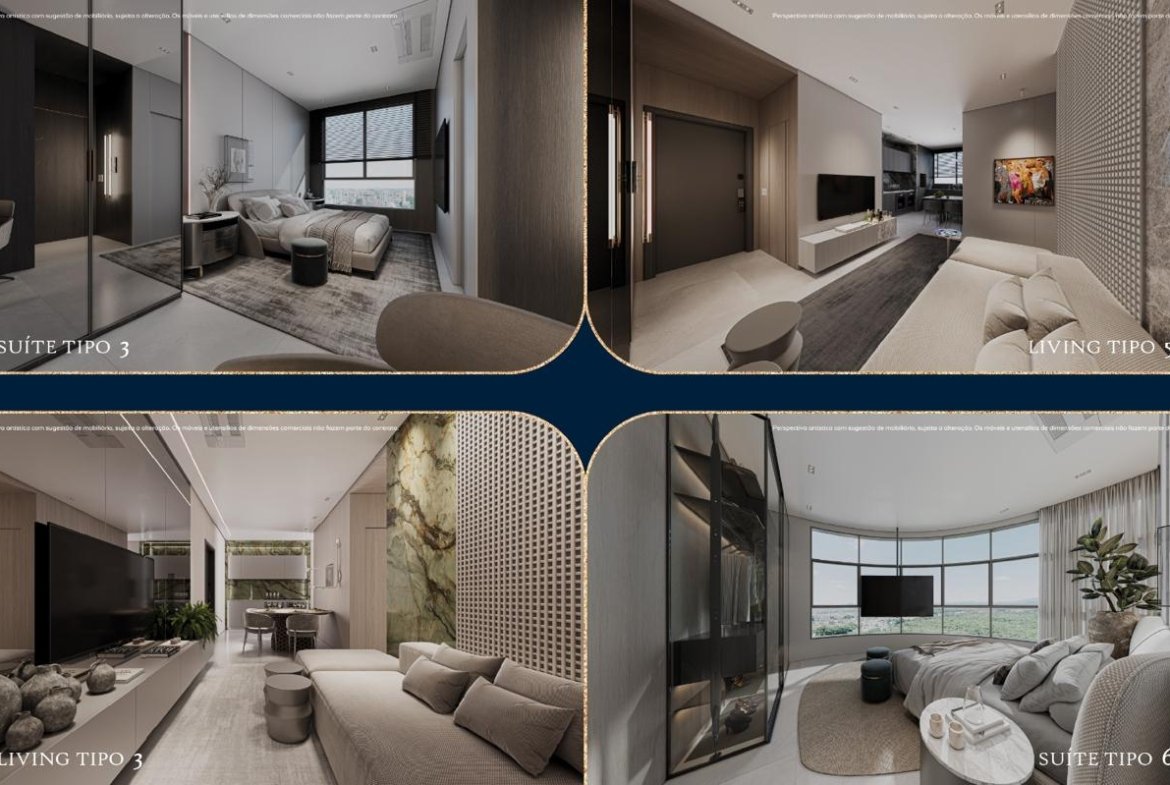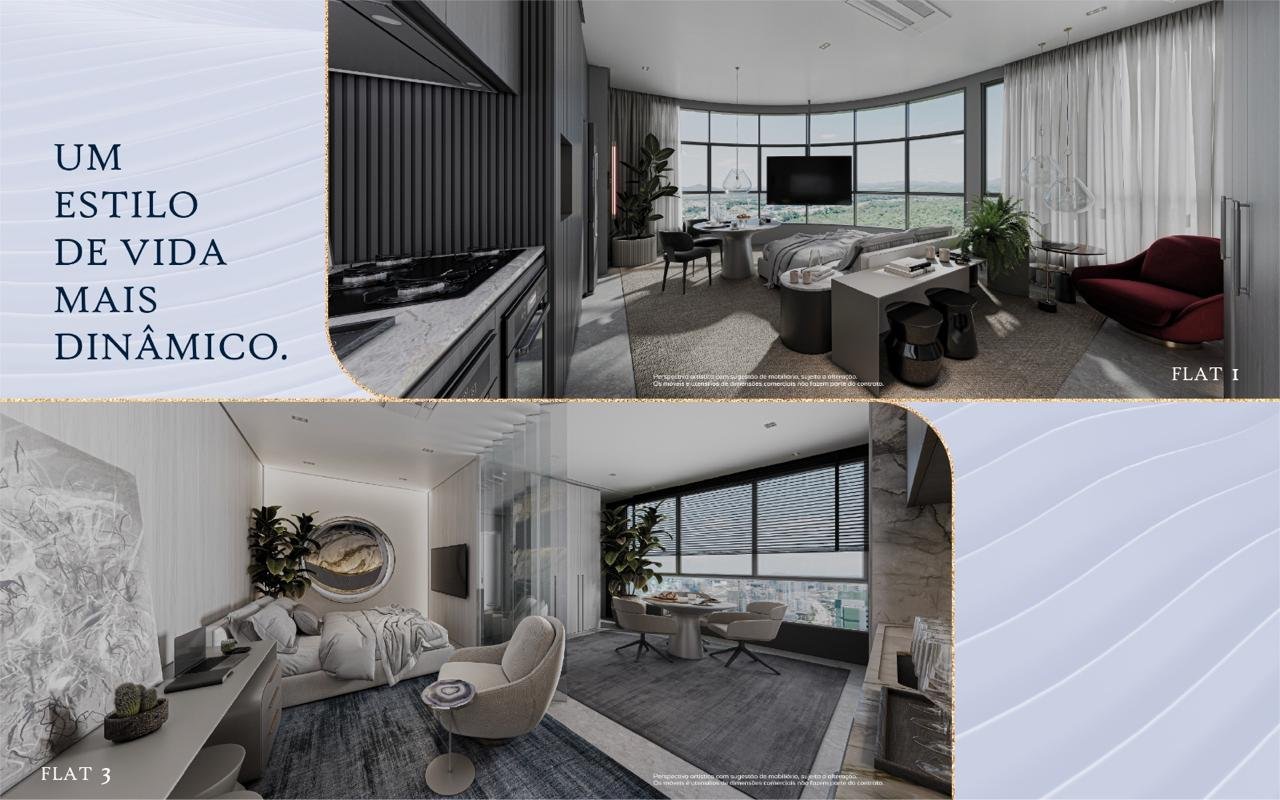 - Studios (36 m² ou 40 m²) (ideal para renda com aluguel ou investidores que buscam ativos compactos e de alta liquidez)