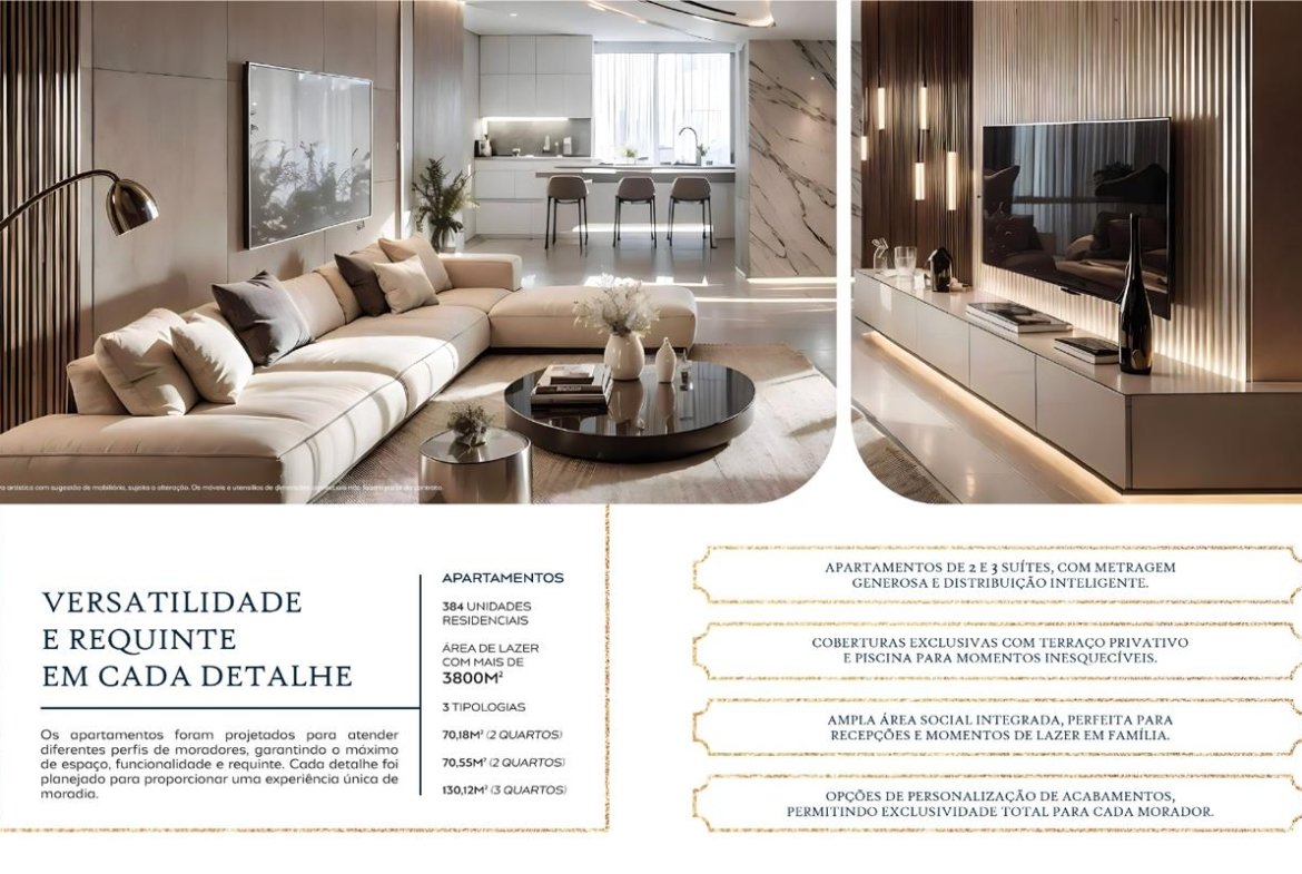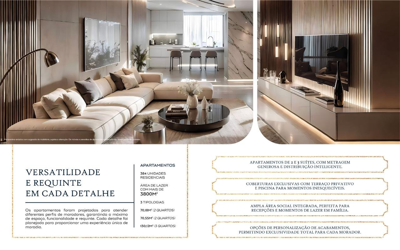 Qualidade e Sofisticação: Fruto de dois anos de pesquisa arquitetônica, o design inovador e sofisticado garante um empreendimento único, com acabamentos de alto padrão e detalhes que inspiram.